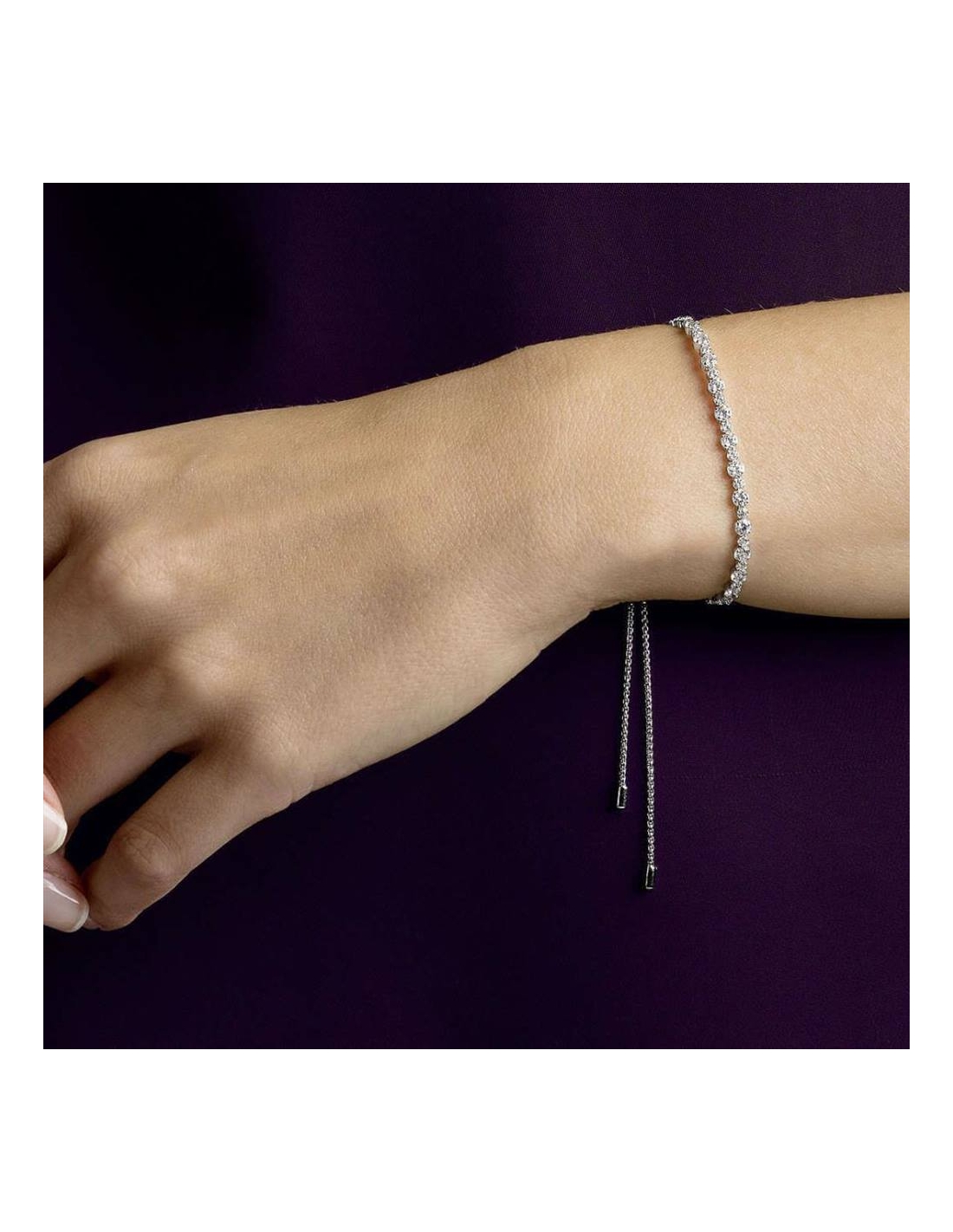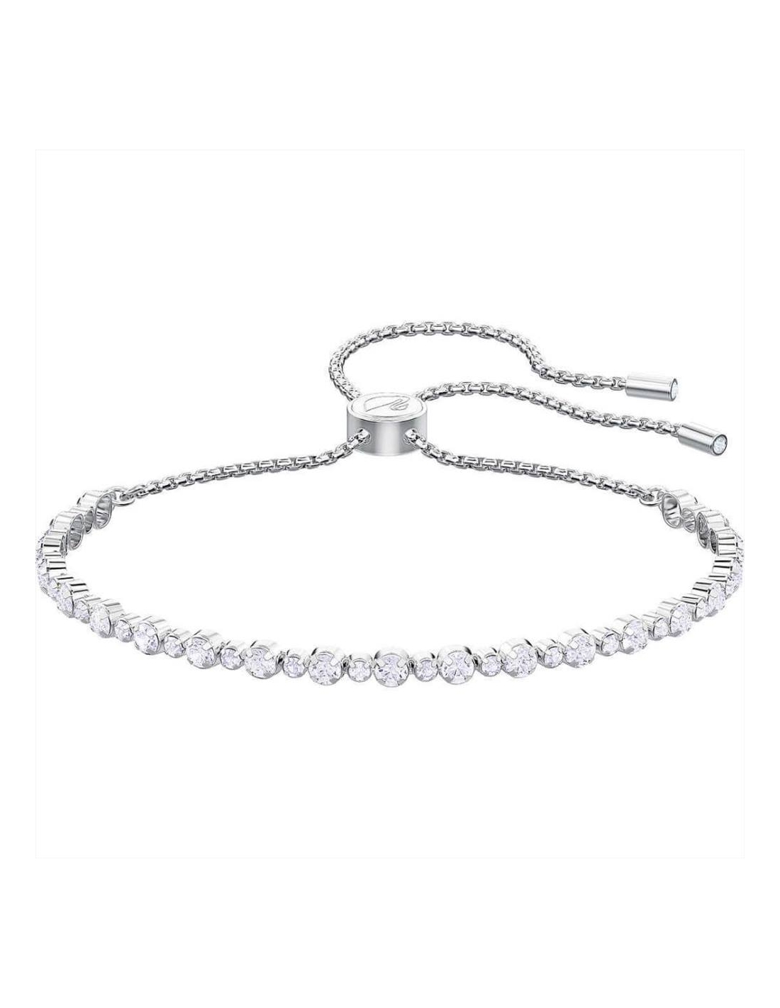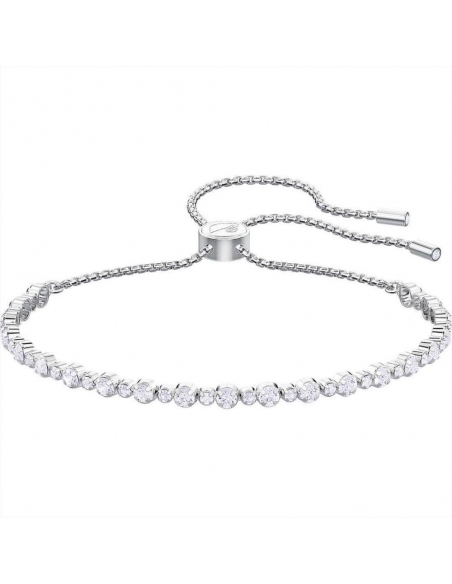 Bracciale di Swarovski della collezione Subtle Trilogy, realizzato in lega di metalli anallergici, placcatura rodio e cristalli swarovski bianchi. Chiusura scorrevole, misura 18/20 cm.